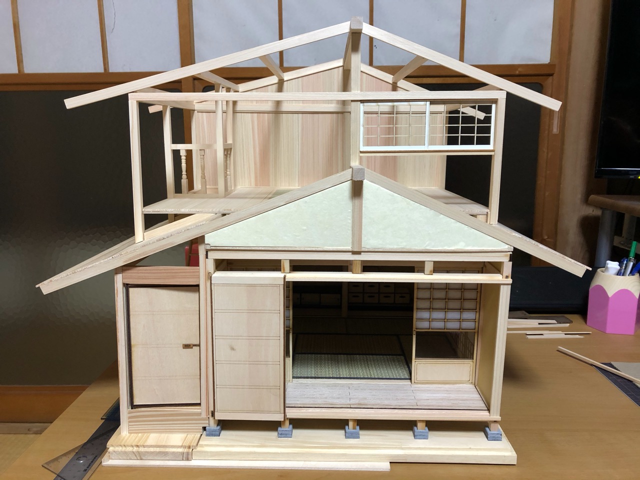 あっ、1階の左側に廊下を増築しました。この後は窓と壁を作っていきます。